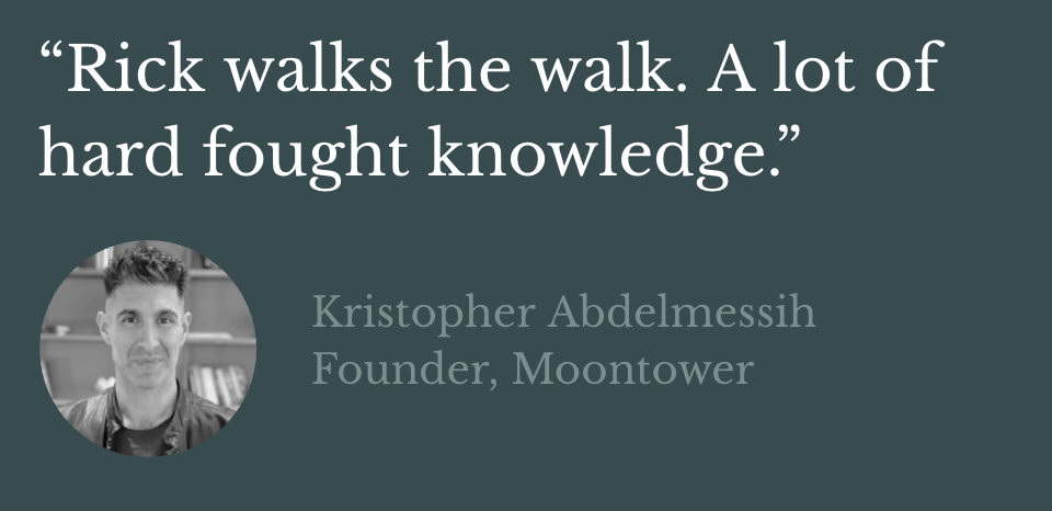 Hey, I’m Rick Foerster, a recovering startup executive turned writer. Before, I helped build and grow a company from zero to $2B+. It was the kind of career that’s supposed to fill the void and conquer all life’s questions.